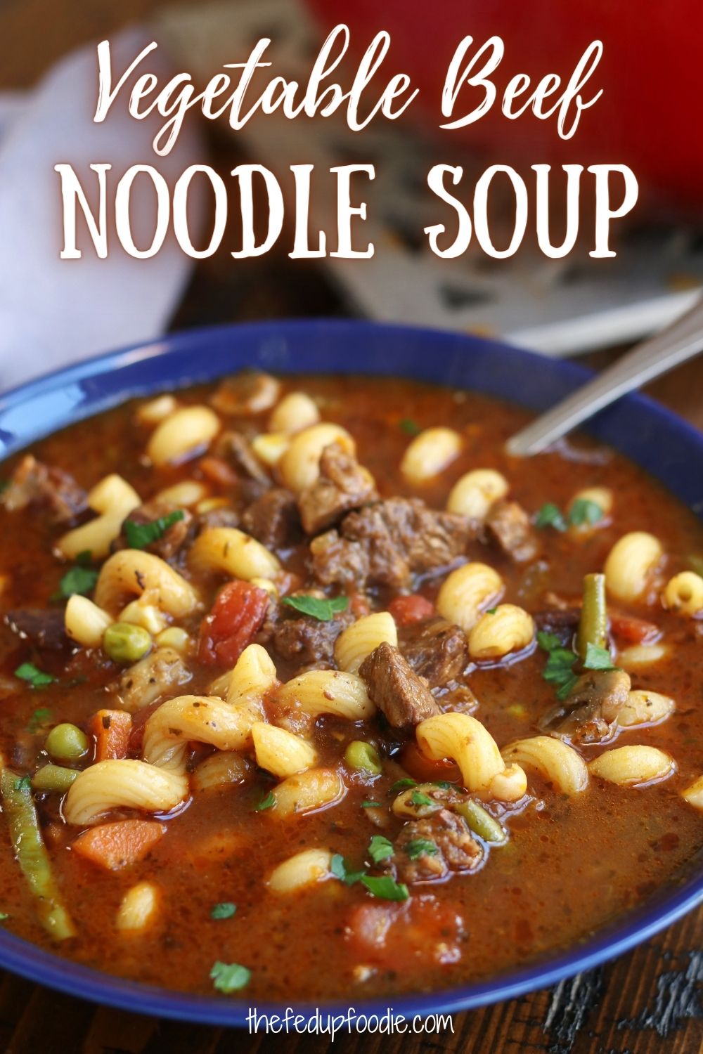 Homemade Beef Noodle Soup has tender bites of beef, tomatoes and red wine in a rich and savory broth. This easy soup recipe is the best cozy winter meal. Stovetop, Instant Pot and slow cooker instructions included.