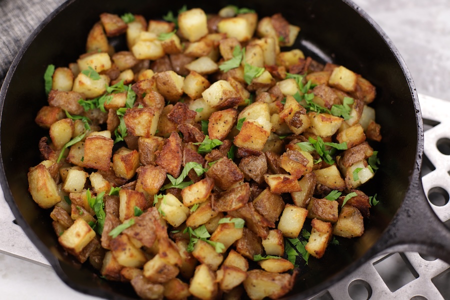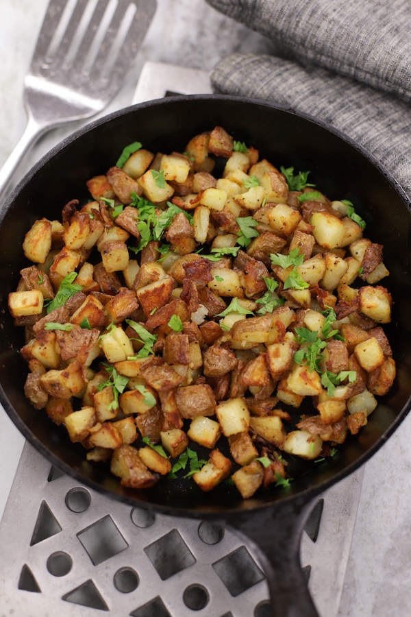 Yes! While they’re a breakfast favorite, these crispy potatoes make an easy side dish for dinner as well. They pair perfectly with mains like trip tip, pork chops, chicken, fish or even a fresh salad and roasted veggies.