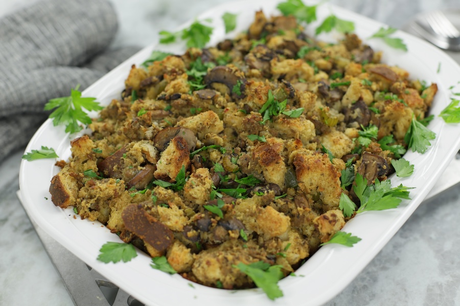 - Let the stuffing rest again for 5 minutes, then check if another 1/2 cup of broth is needed. See Note #3 below.