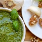Toasted Walnut Pesto recipe is a classic sauce with a toasted nutty twist. Makes the best pastas, sandwiches and is an all around great boost to all kinds of summer meals.